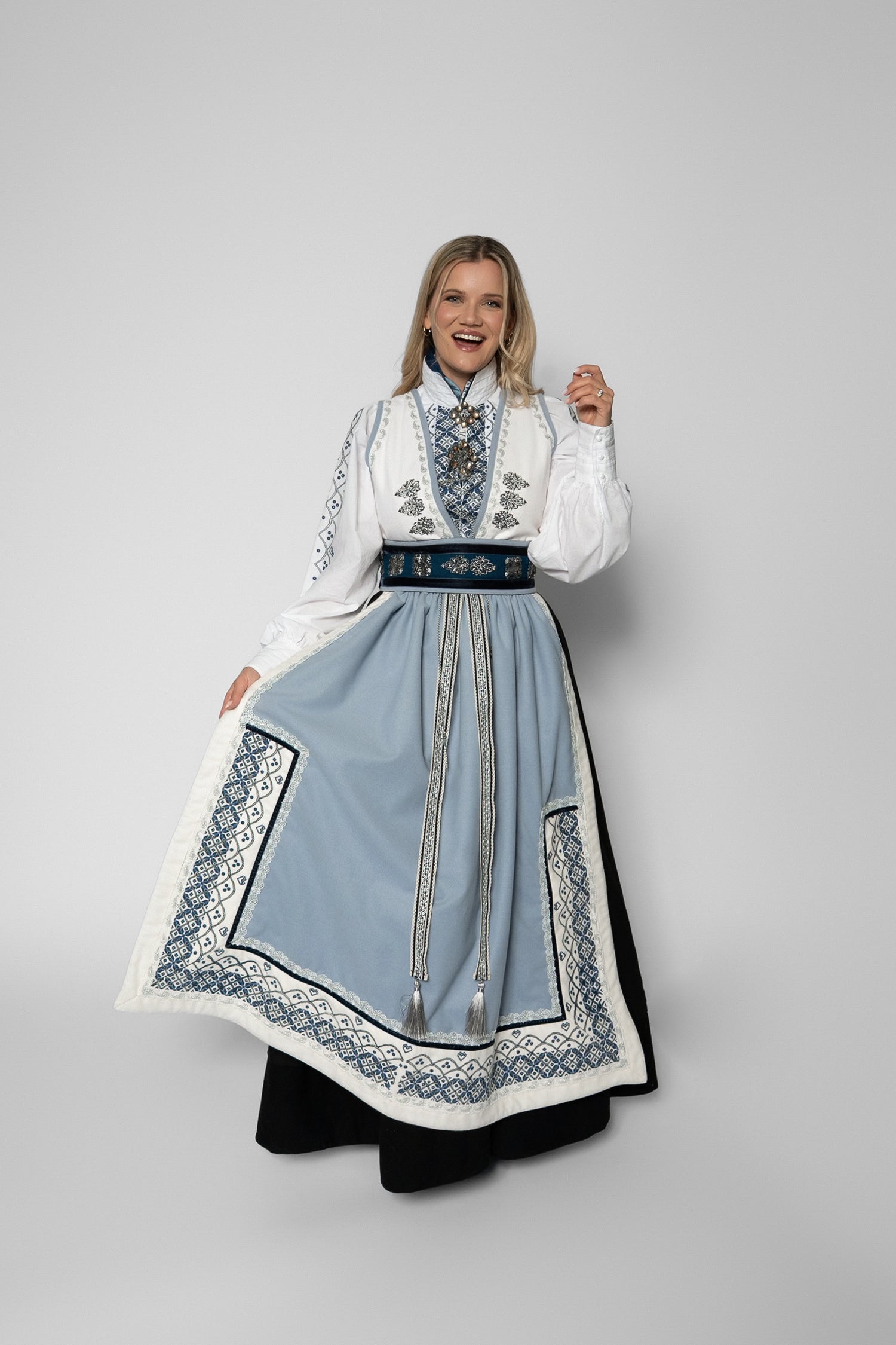 20% SALGDrømmeblusen Hvit med blått broderi