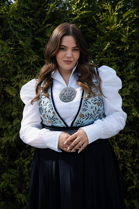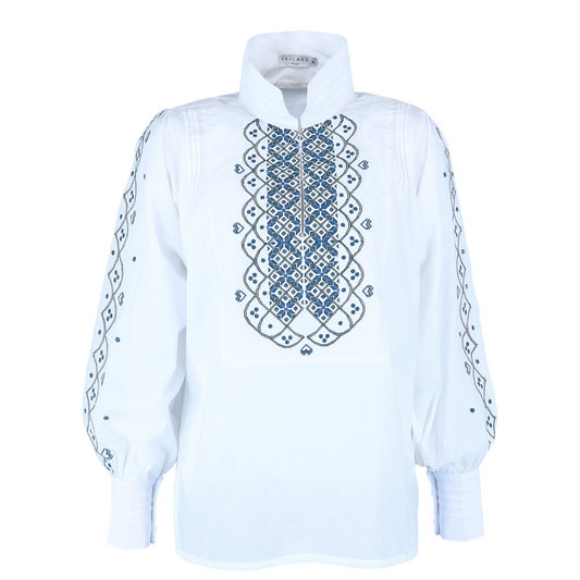 Drømmeblusen Hvit med blått broderi