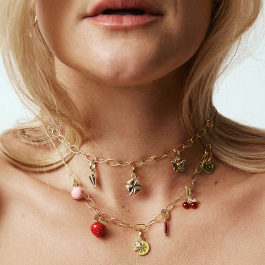 Jewelry kan du bygge din egen identitet. Her finne du lekne frukt-charms, symbolske kvarts, hjerter, cowboyhatt – og mye annet gøy! Your story - your vibe.