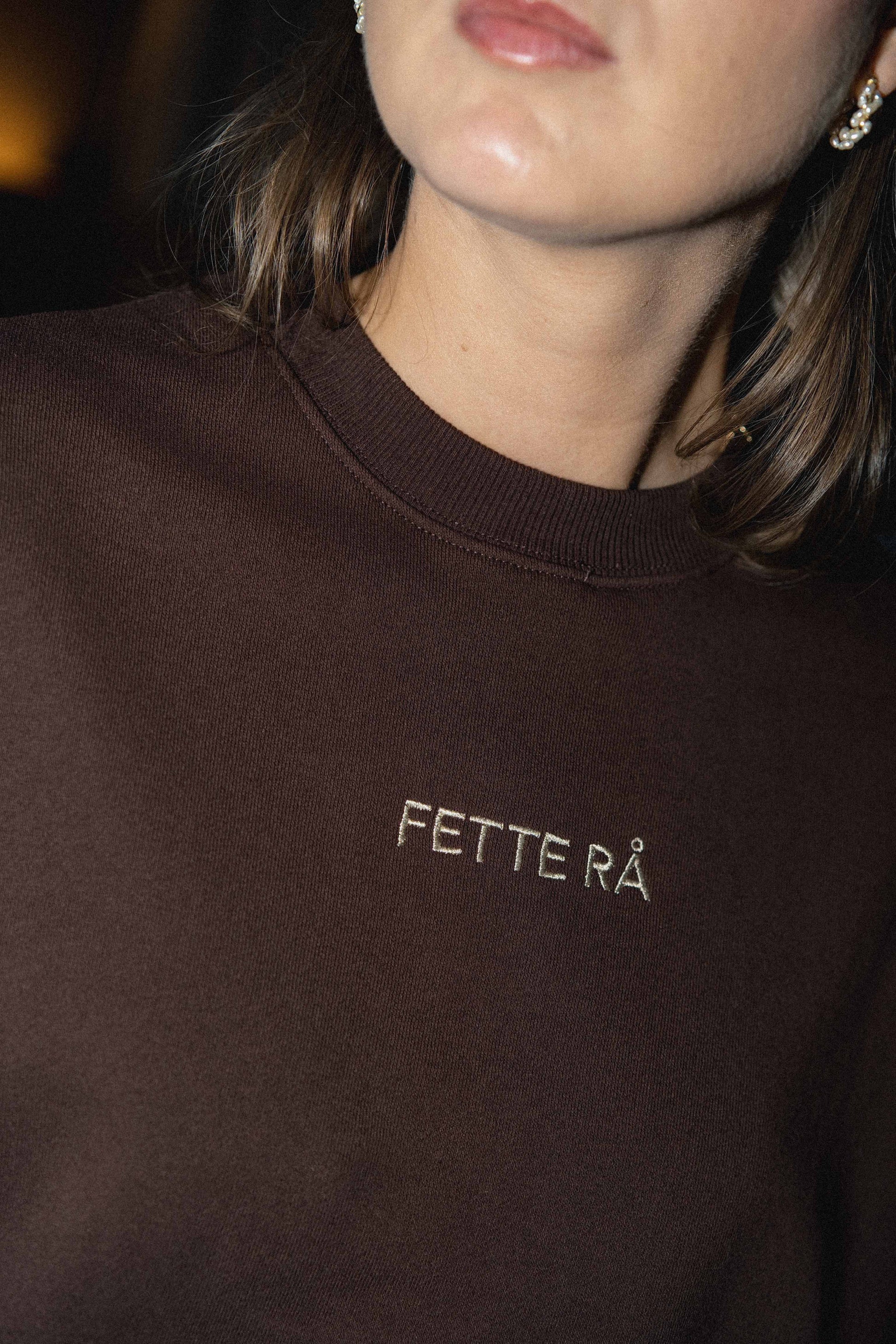 En kraftfull kombinasjon av komfort og selvtillit. Denne brune crewnecken med teksten “fette rå” er laget for alle som vil føle seg sterke, jordede og uanstrengt stilige, selv på de mest casual dagene.