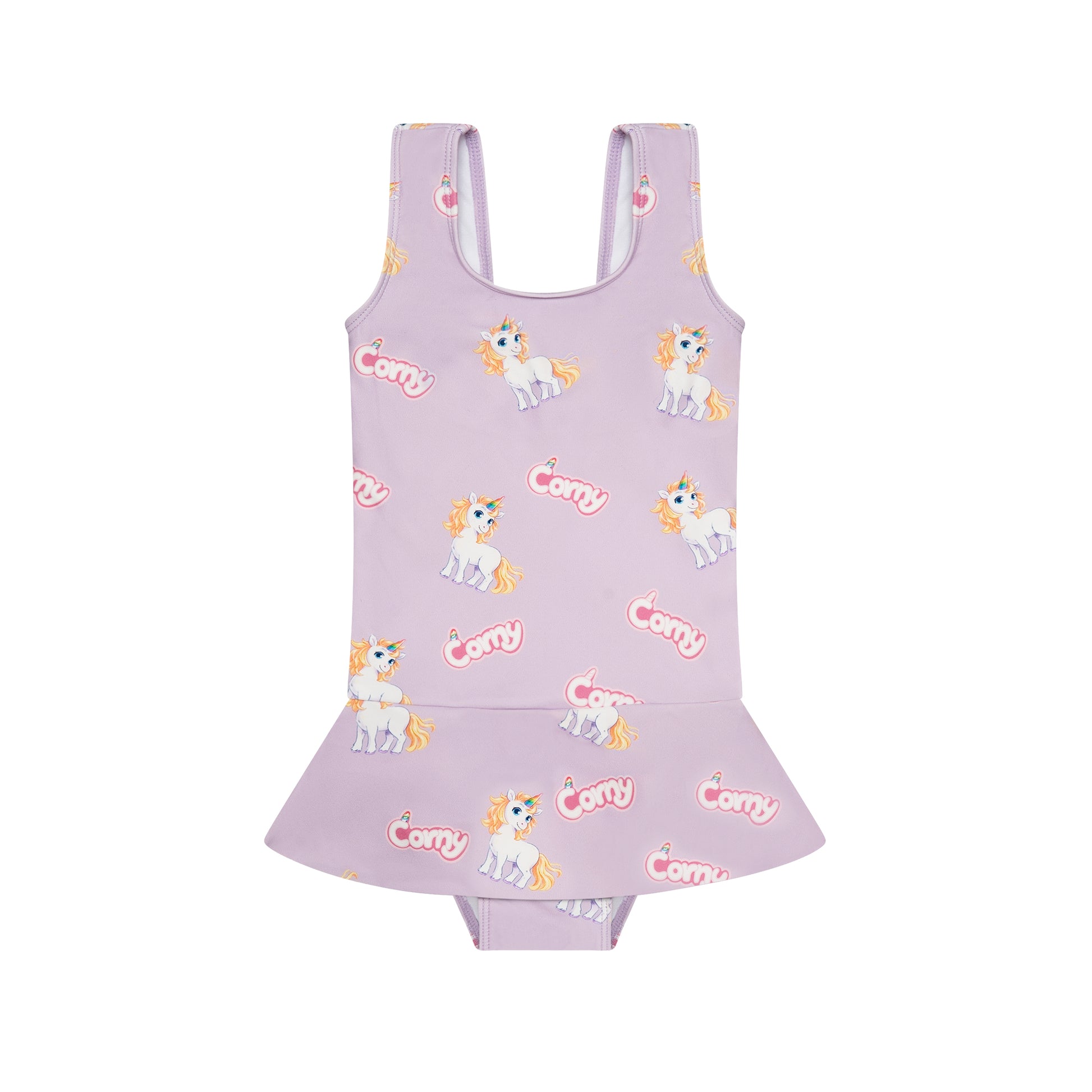 Corny, den magiske enhjørningen som skifter farge etter humøret, gjør denne badedrakten til en fantasifull favoritt i sommergarderoben.