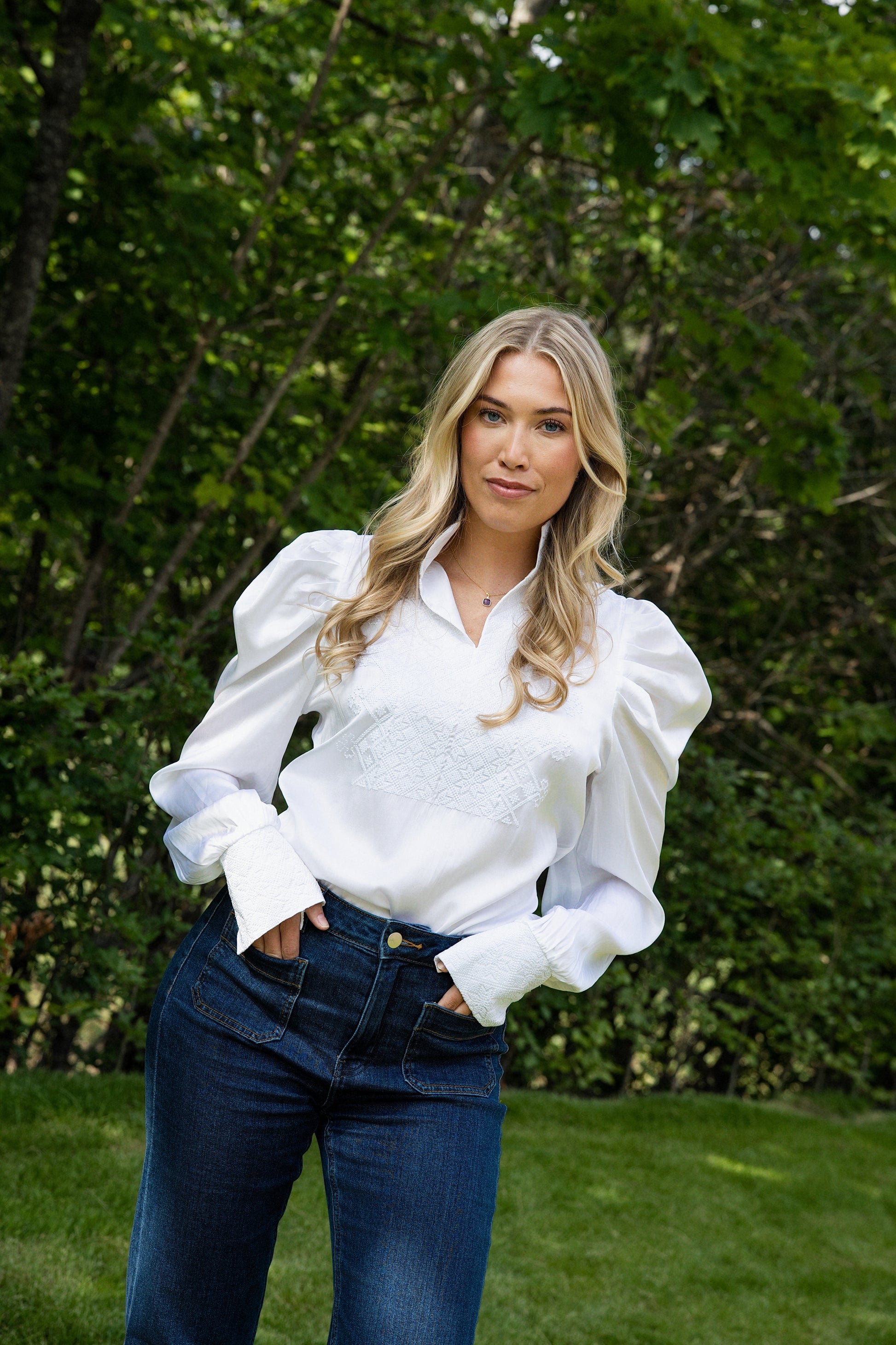 Drømmeblusen i hvit med hvitt broderi silke