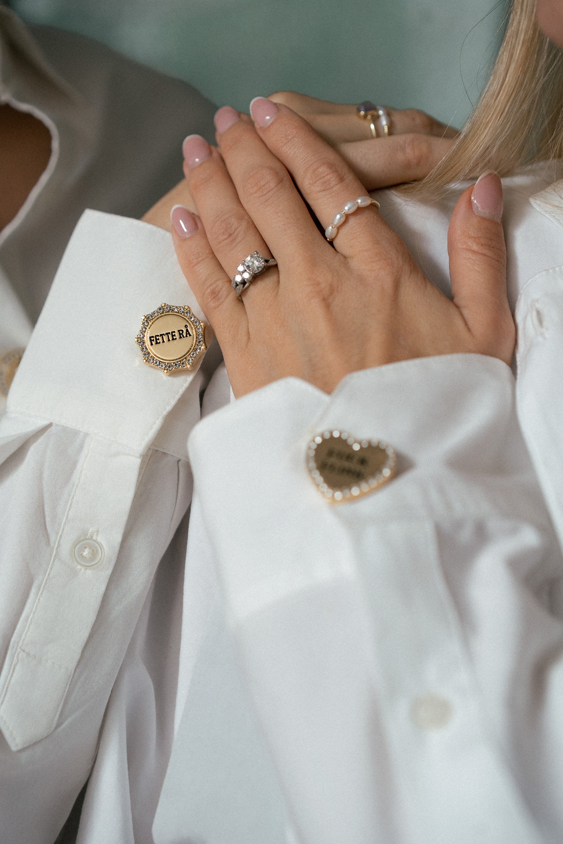 Gi antrekkene dine et løft med "Fette Rå" Button Cover, fra samarbeidet Lyng x Touch of EEVA. Disse dekorative knappe er laget for å klikkes rett på eksisterende knapper og gir alt fra bluser til kjoler og yttertøy et freshere, mer personlig uttrykk.