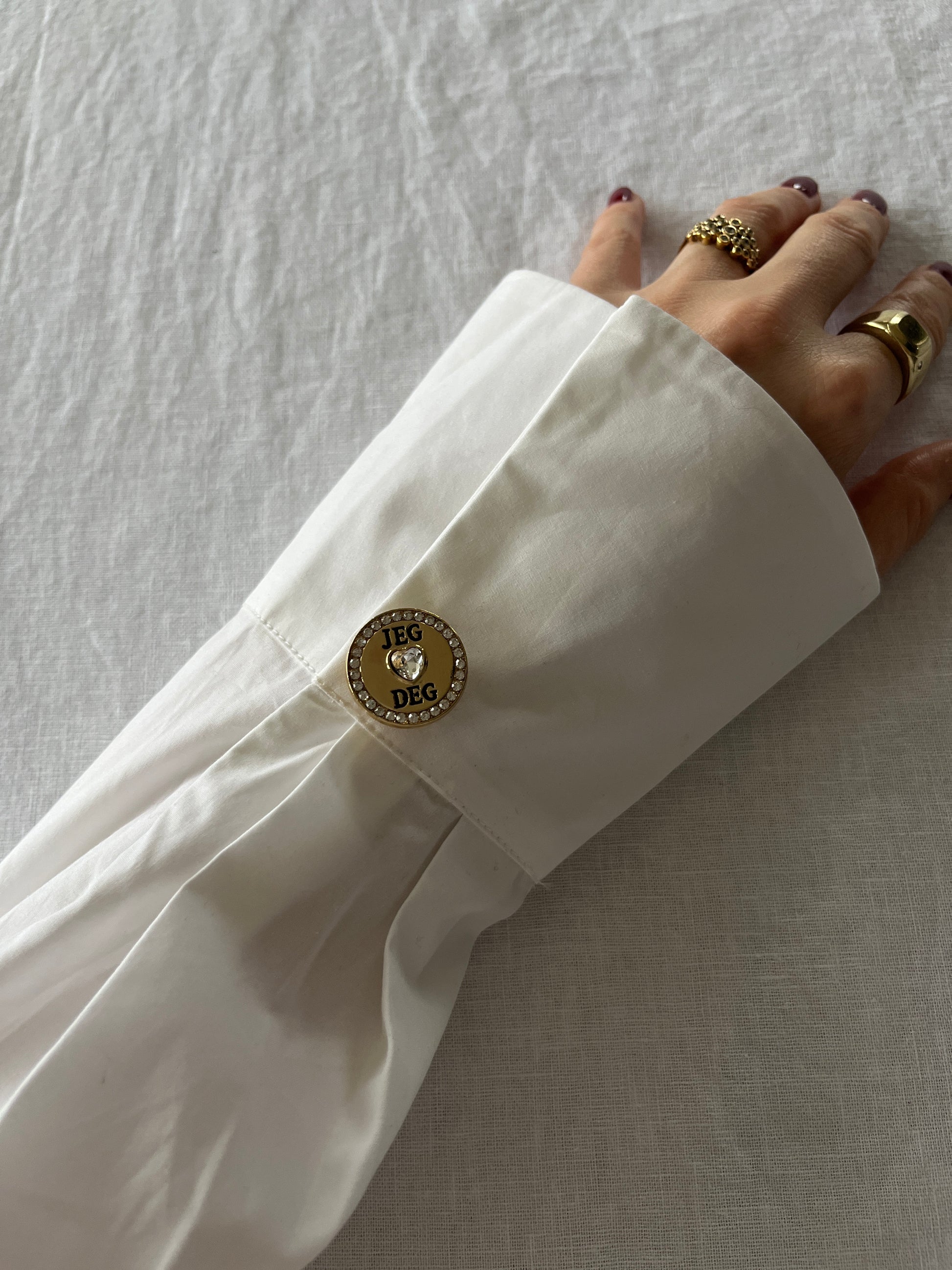 Gi antrekkene dine et løft med Love Button Cover, fra samarbeidet Lyng x Touch of EEVA. Disse dekorative knappe er laget for å klikkes rett på eksisterende knapper og gir alt fra bluser til kjoler og yttertøy et freshere, mer personlig uttrykk.