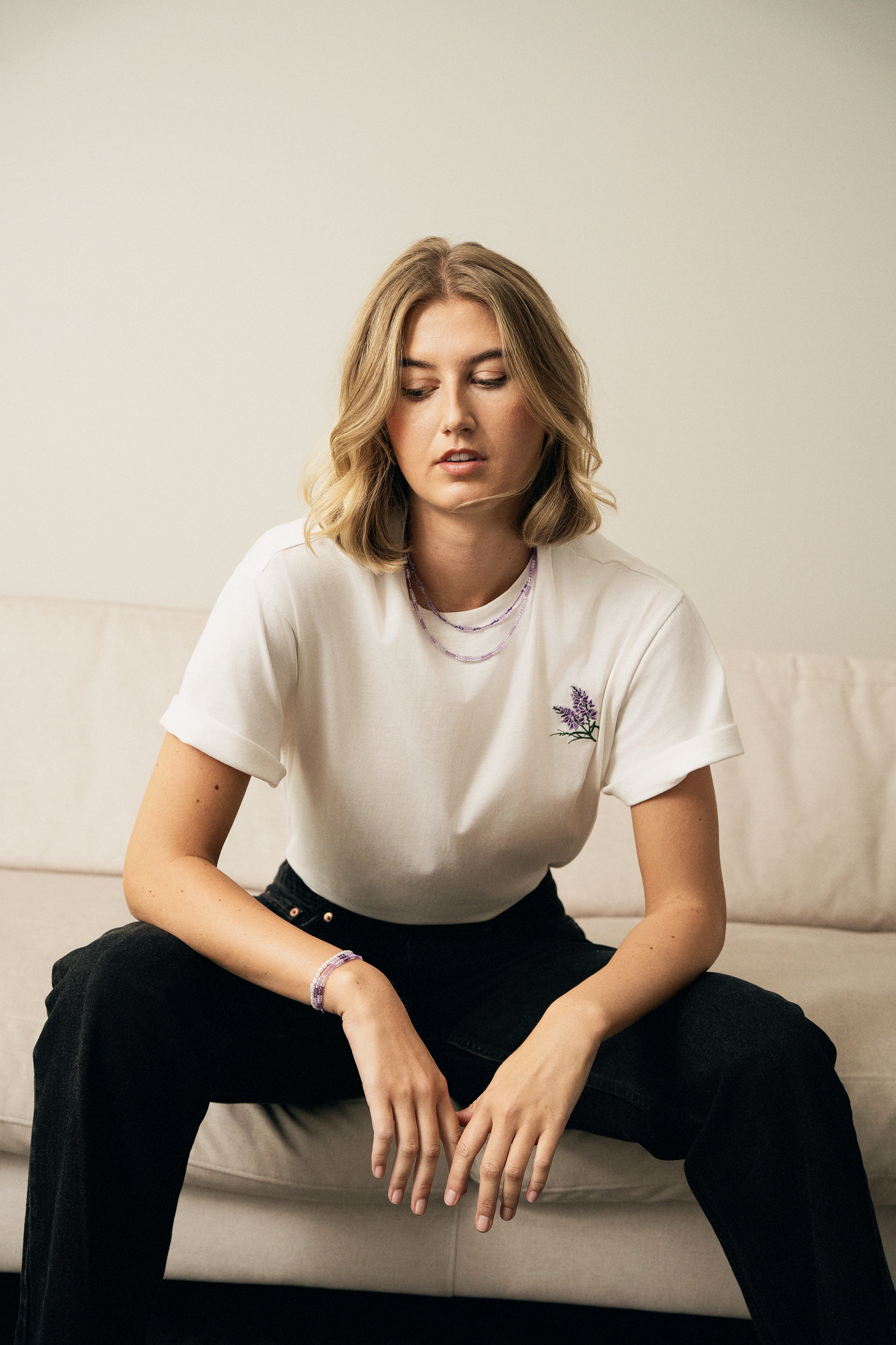Møt din nye hverdagsfavoritt – Lyng T-Skjorte. Laget av høykvalitets, mykt materiale som føles lett og behagelig mot huden, er denne t-skjorten perfekt for både hverdagsbruk, yoga og trening.