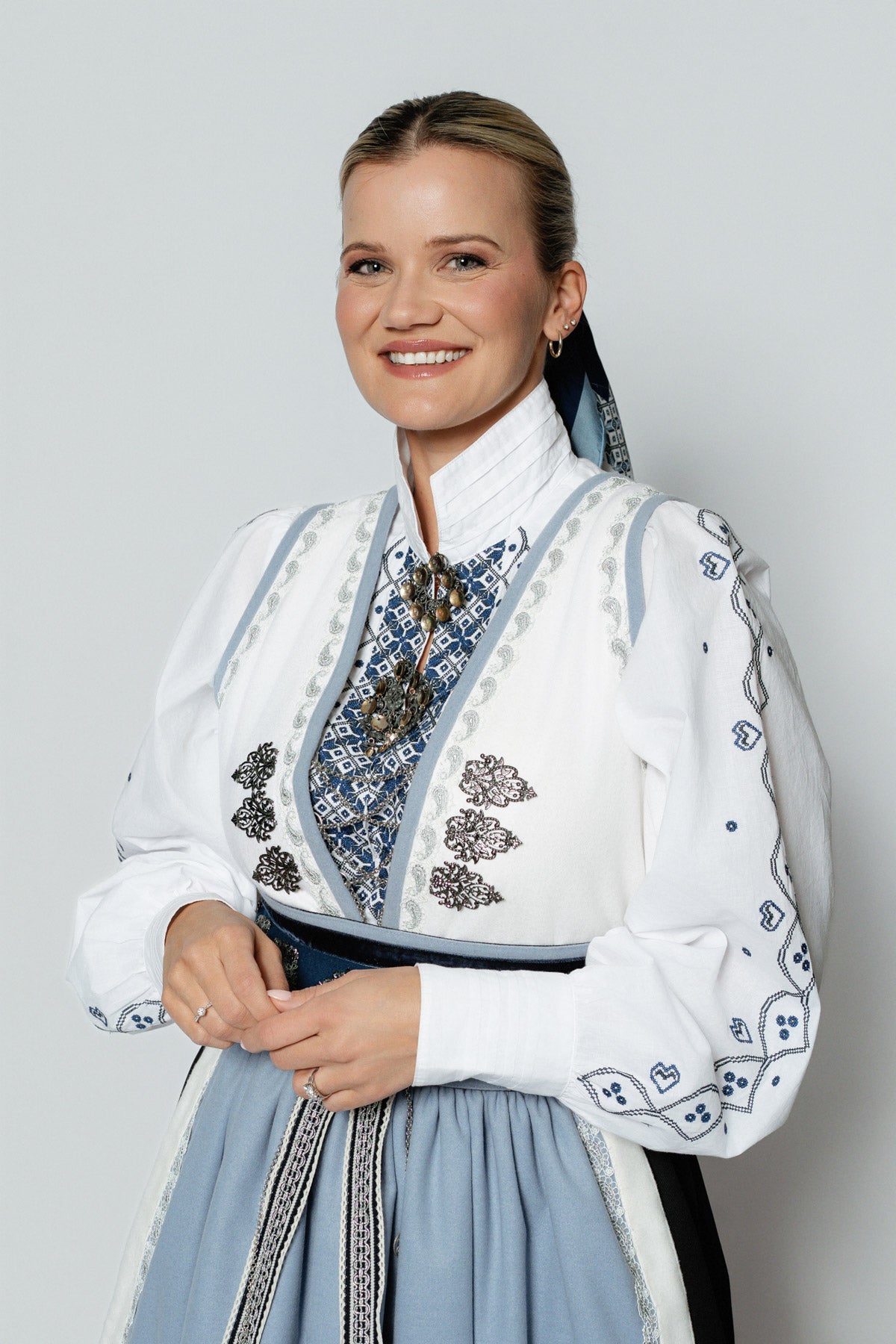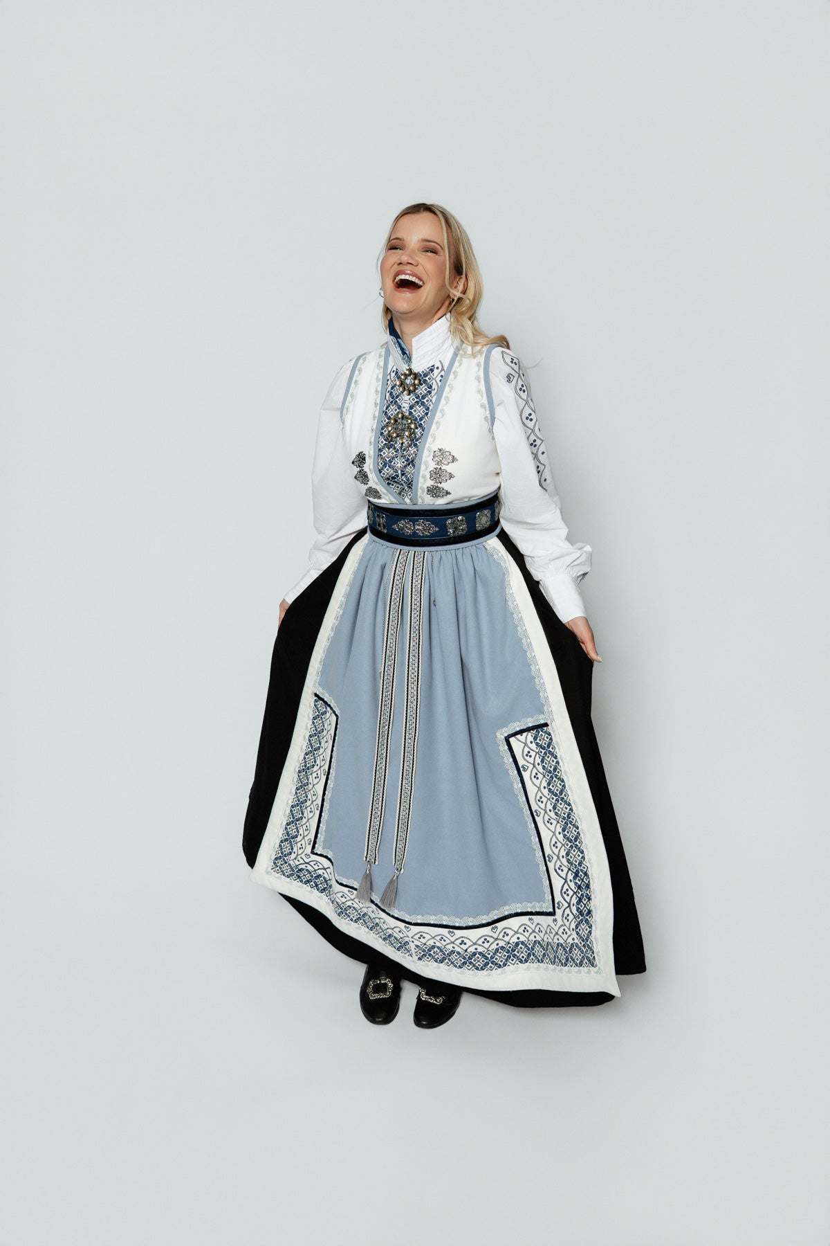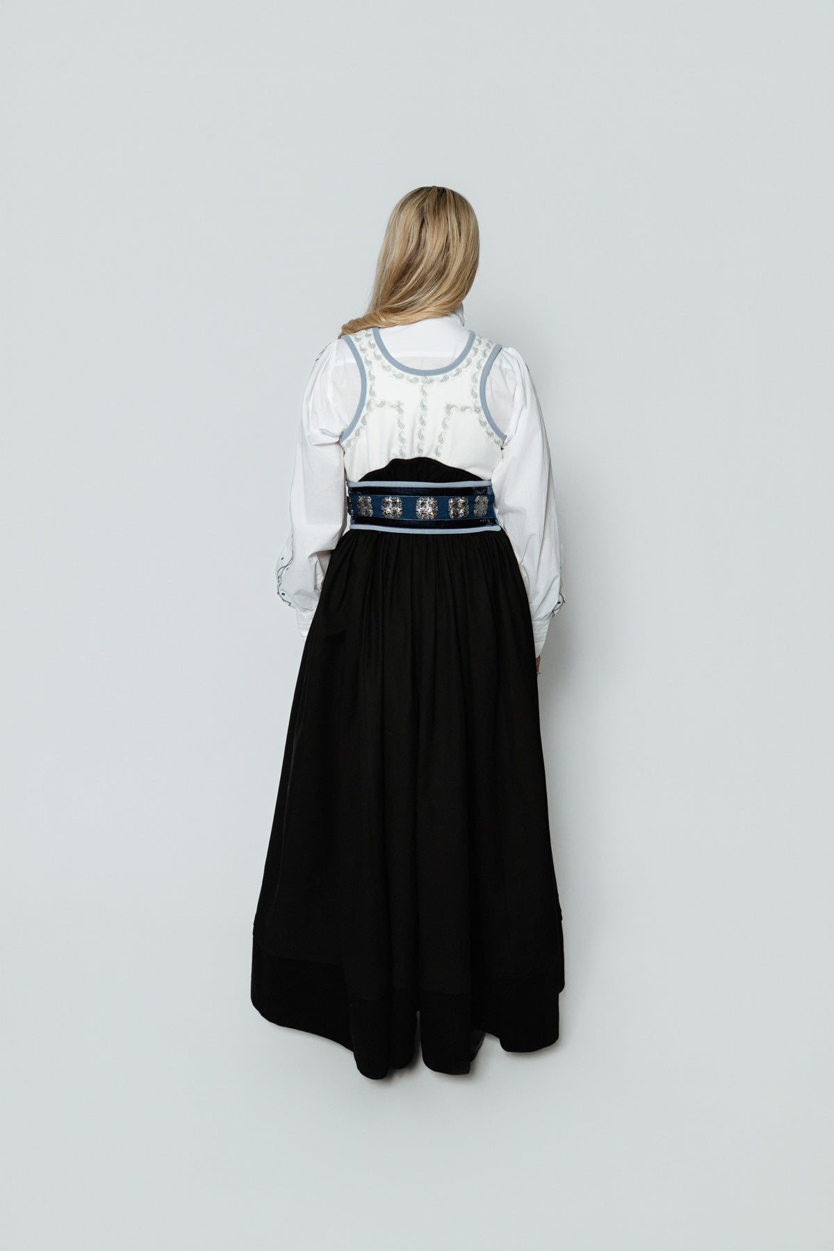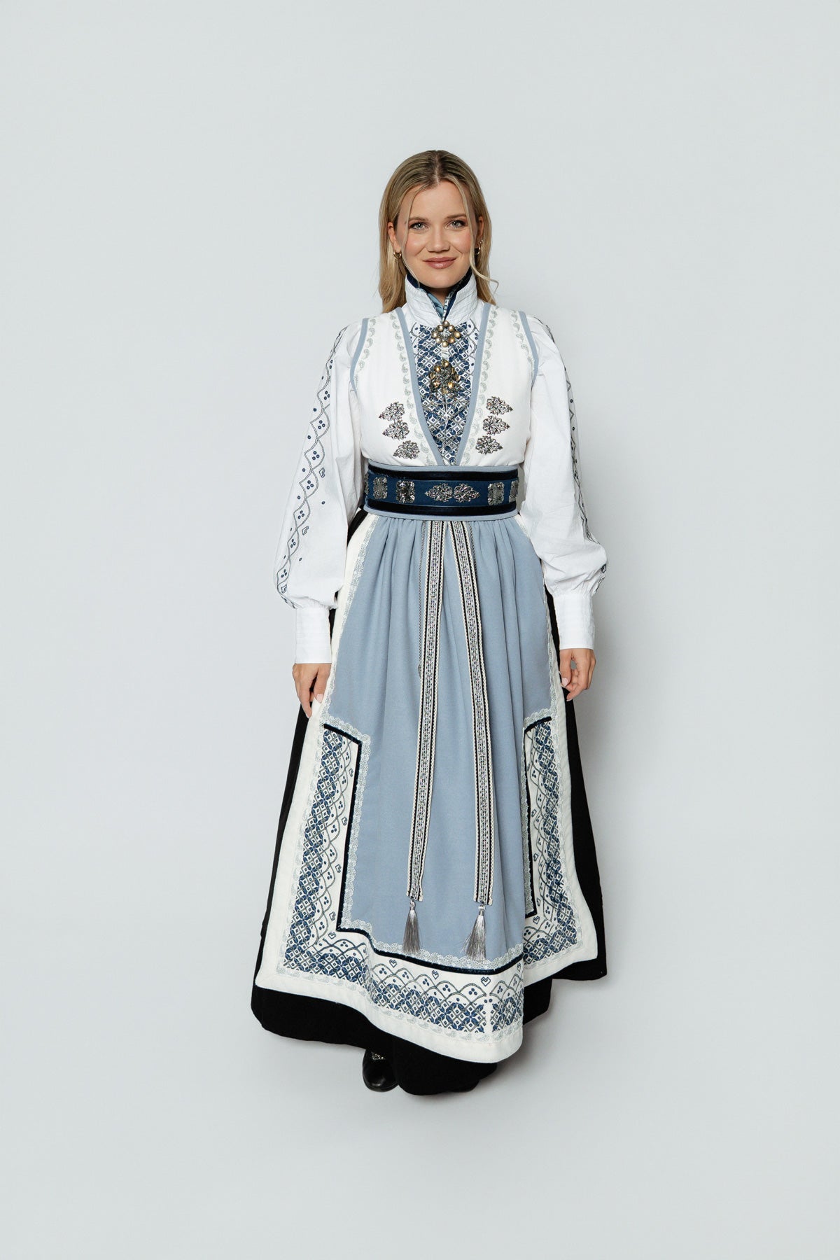 Belte med "støler" binder sammen festdrakten på en perfekt måte og gir et ekstra touch av stil. Forkleet i UIll/polyester har vakre broderidetaljer som gir festdrakten et ekstra snev av eleganse, mens stakken, laget i en blanding av 70% rayon og 30% lin, gir et flott fall og komfort gjennom hele dagen.