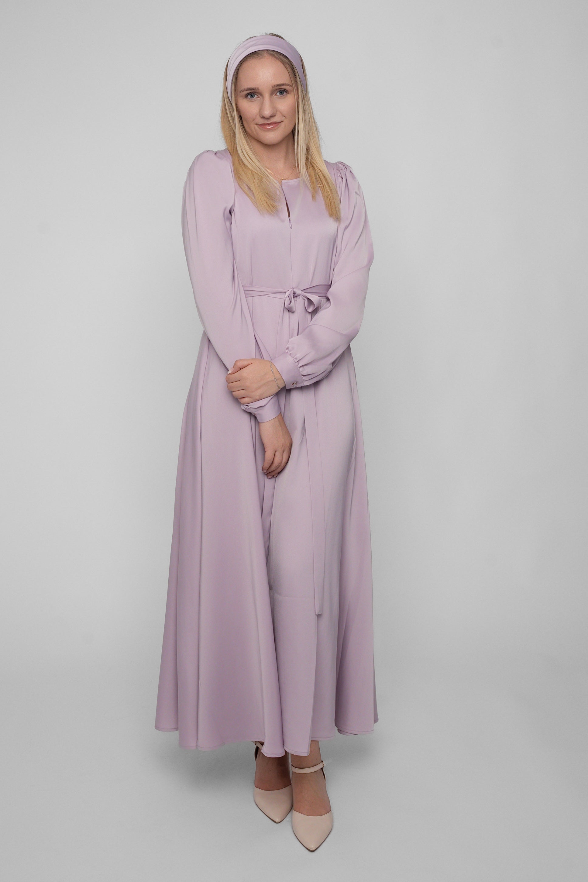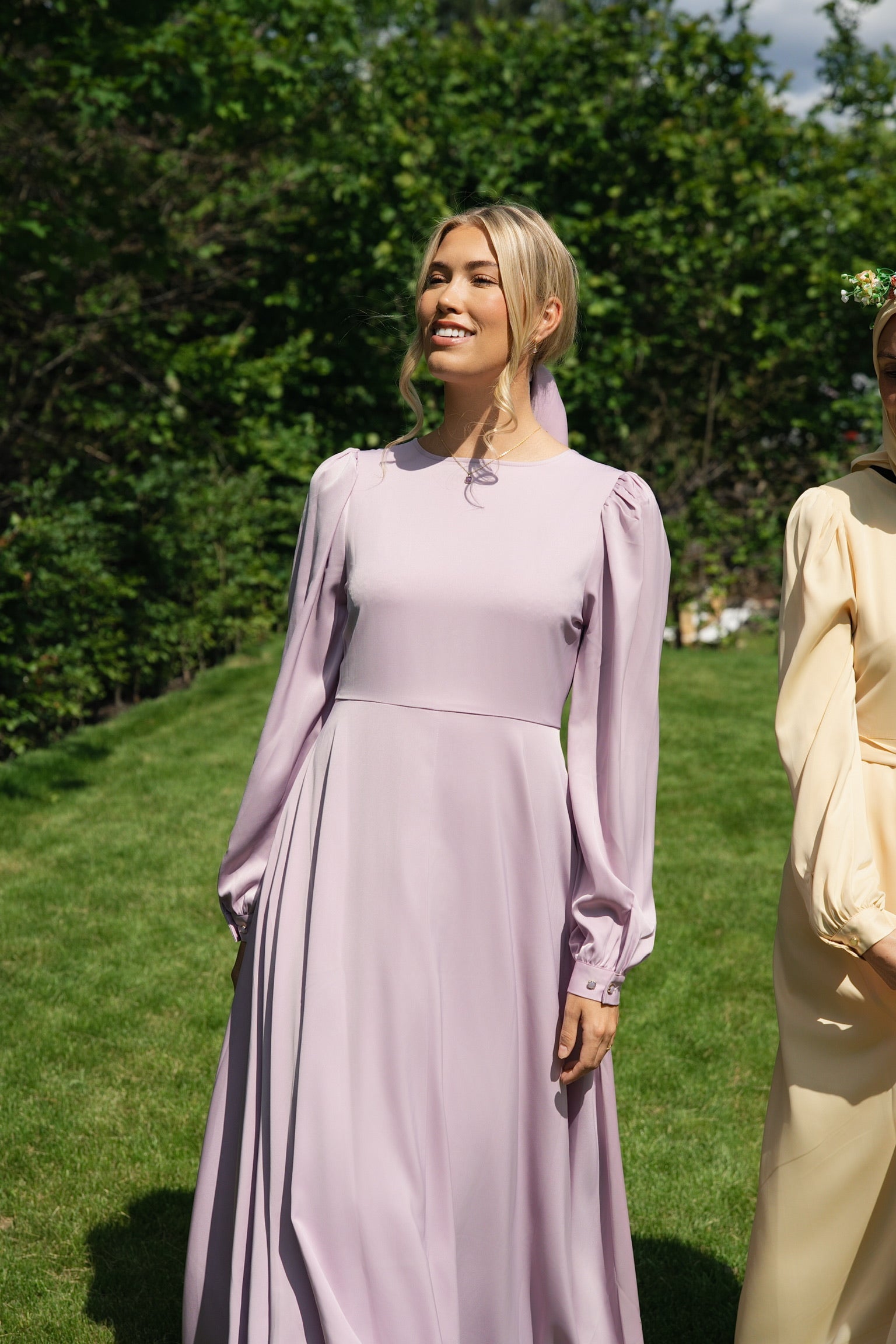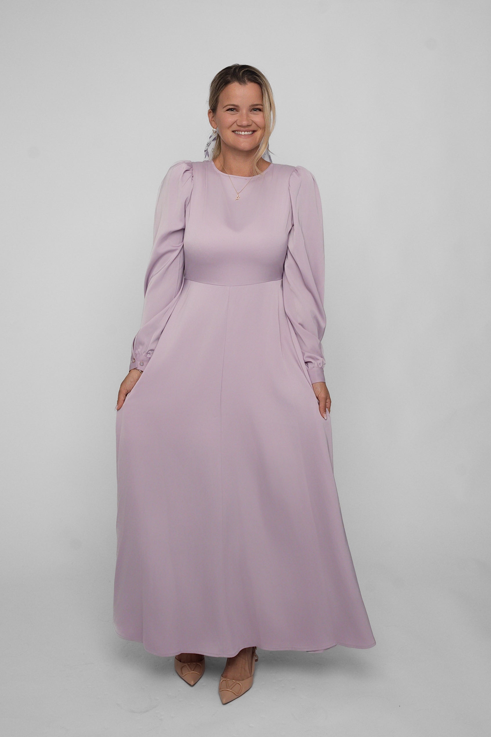 Den glansfulle satengen faller mykt og vakkert rundt kroppen, og gir deg en følelse av luksus – enten du skal i bryllup, dåp, på sommerfest eller bare vil skinne litt ekstra en vanlig dag.