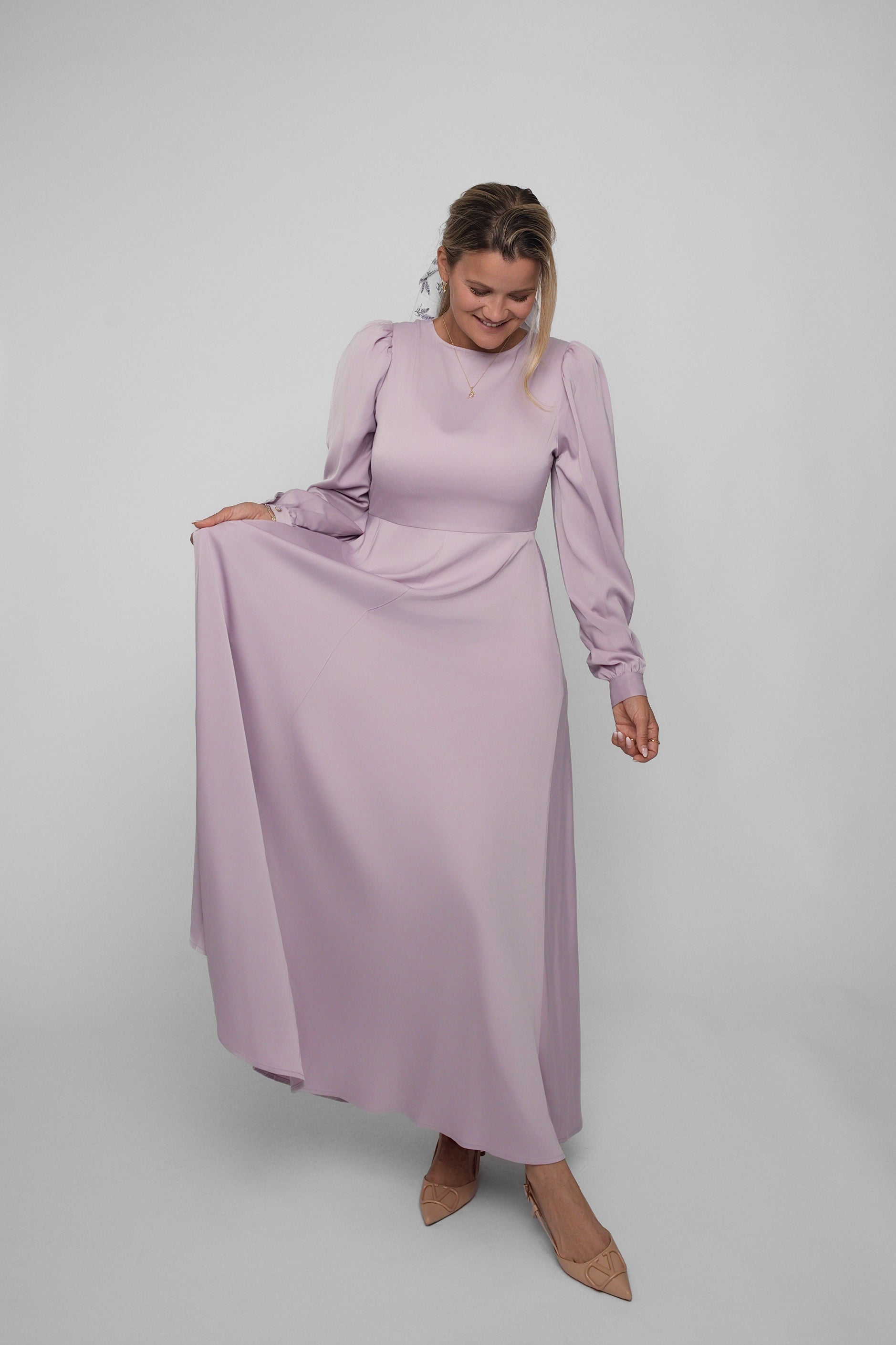 Madikken-kjolen i lilla sateng er skapt for deg som elsker tidløs eleganse med en leken vri.