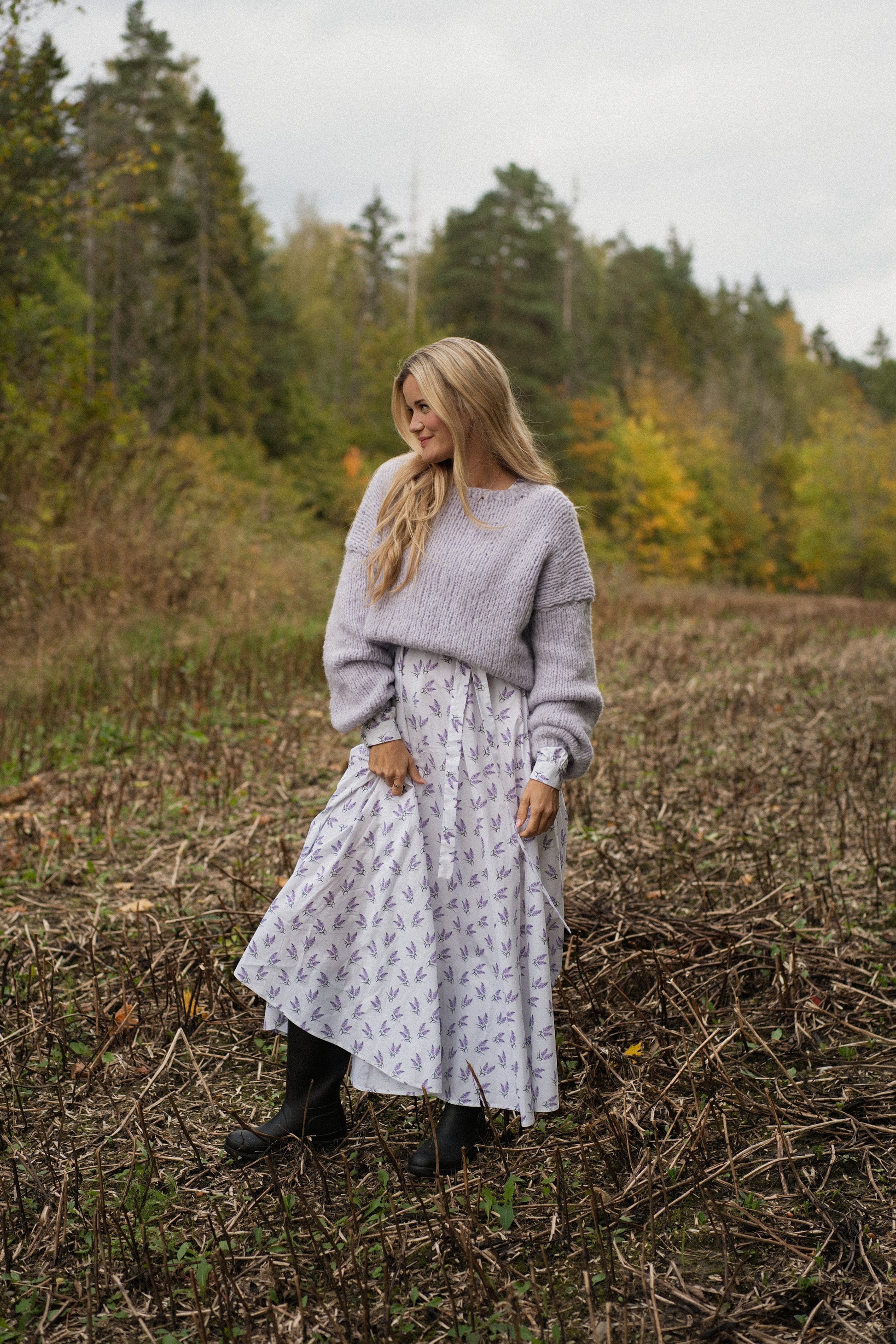 Kjolen er laget i myk og pustende bomull som føles lett og behagelig mot huden – perfekt for varme sommerdager eller med ull under på kjøligere kvelder.