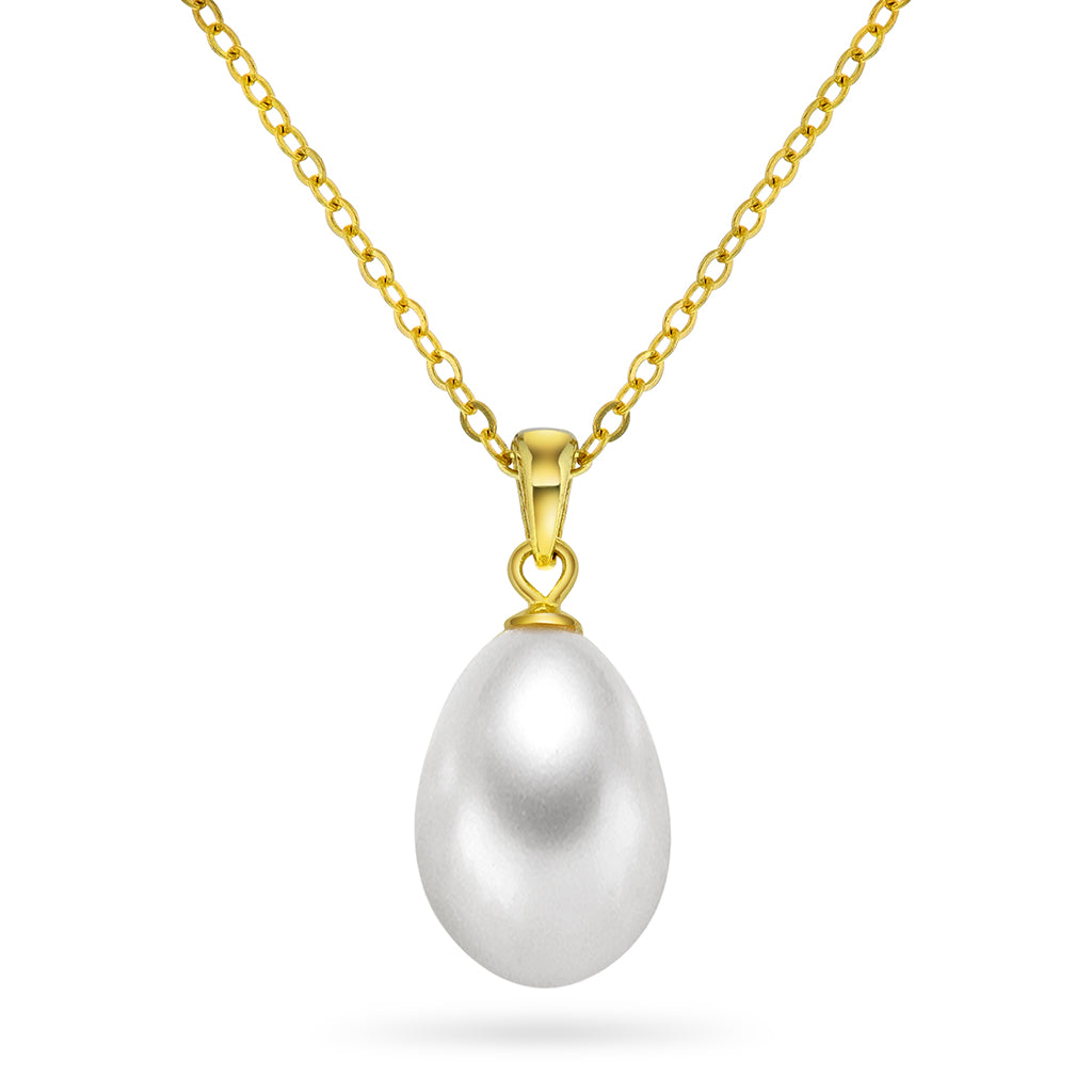 Perledråpe – smykke i forgylt sølv med ferskvannsperle